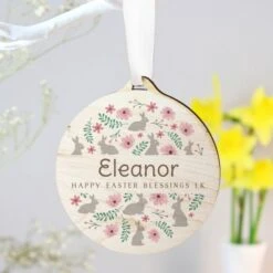 Personalised Easter Bunny Round Wooden Decoration