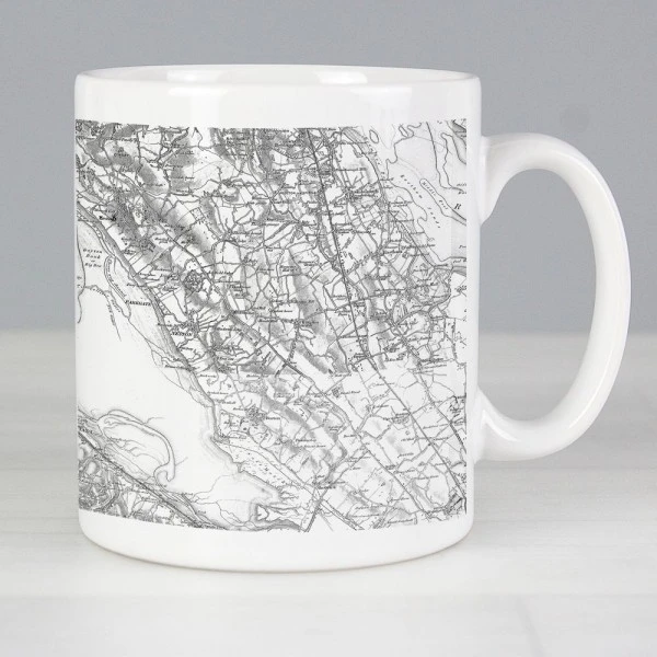 Personalise this 1805 – 1874 Old Series map mug with any postcode of your choice. The mug will then display the local area surrounding your chosen postcode.