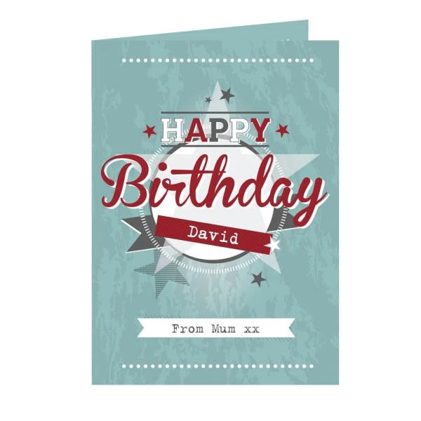 The card can be personalised on the front. The word “HAPPY” is fixed.