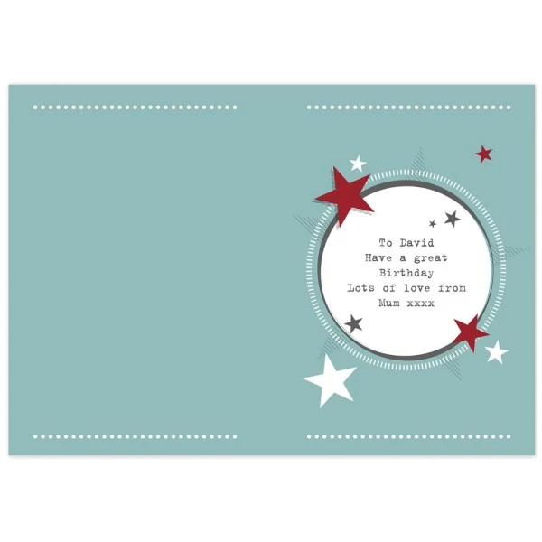 Underneath the word Happy the card can then be personalised with a line up to 10 characters (e.g. Birthday or Father’s)