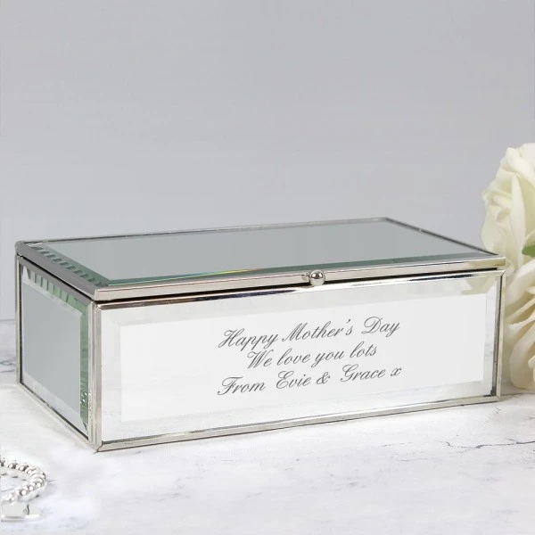 This clean modern jewellery box with mirrored finish, features three compartments to store your jewellery.