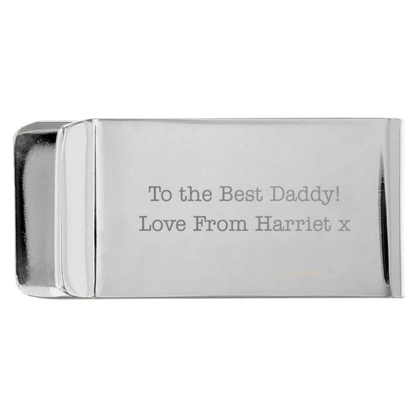 Personalise this silver plated Money Clip with a message over 2 lines up to 20 characters per line.