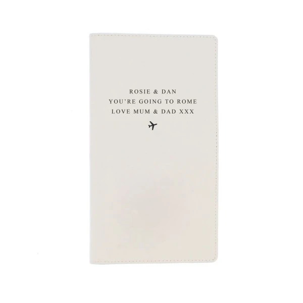 Personalise the front of this travel document holder with 3 lines of text up to 20 characters per line. All personalisation will appear in UPPERCASE.