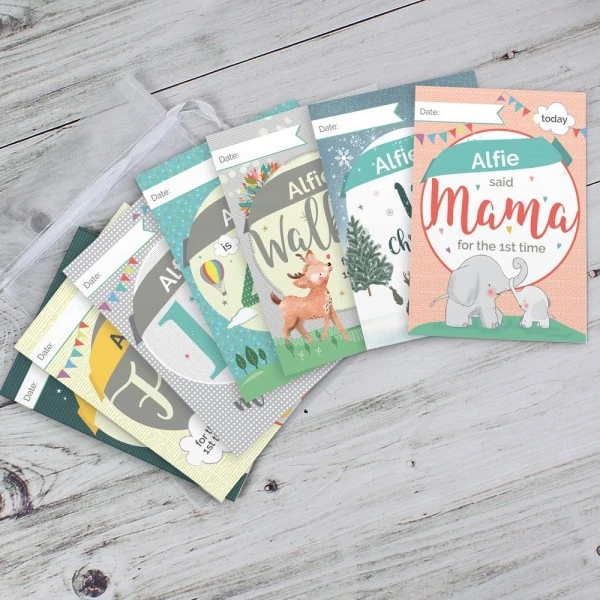 These cards are the perfect size to fit into your child’s hands and include all important milestones such as first time crawling and 1st birthday.