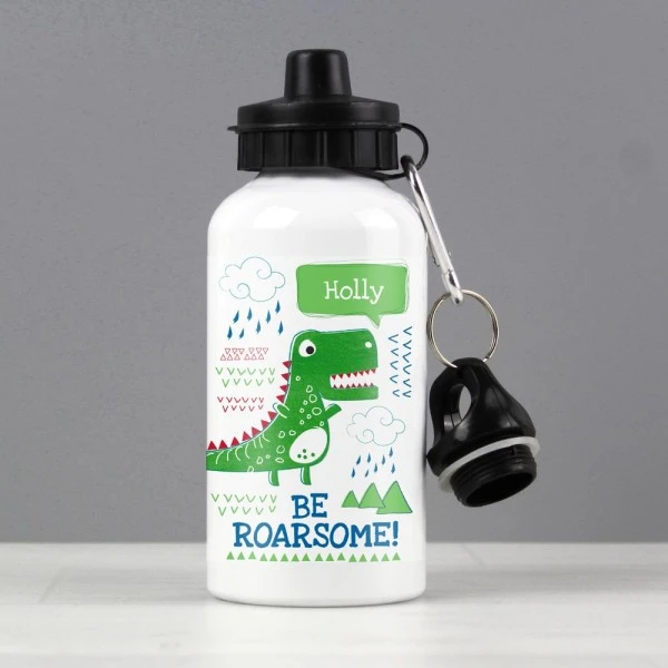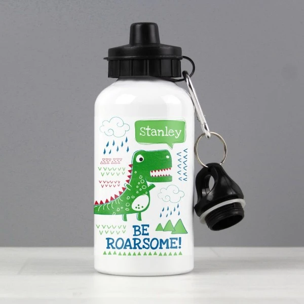 Personalise this “Be Roarsome” Dinosaur Water bottle with any first name up to 12 characters.