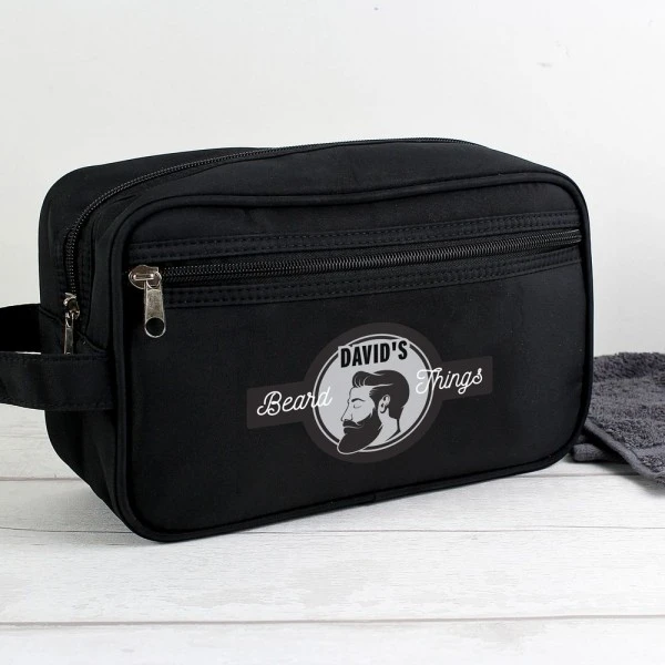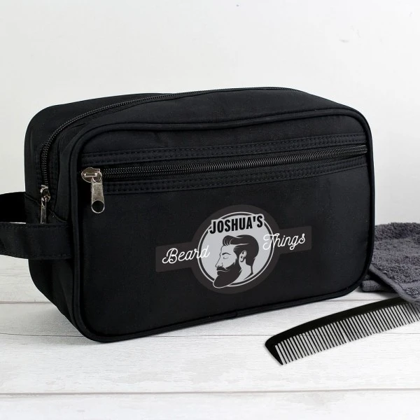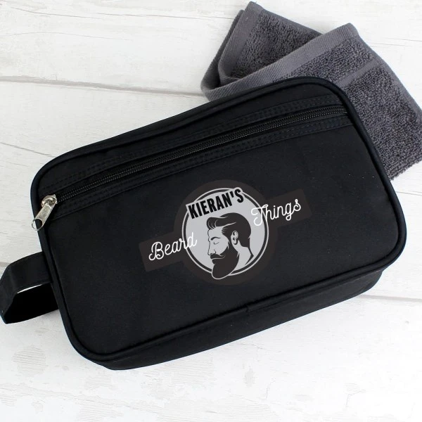 This Personalised Beard Things Black Wash Bag is perfect for storing a variety of beard -related products!