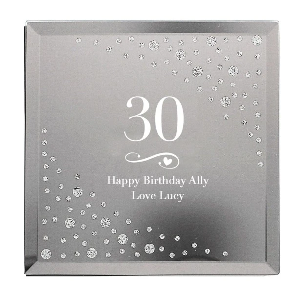 A beautiful diamante effect mirrored Trinket. An Ideal gift to present to a special lady on her Birthday.