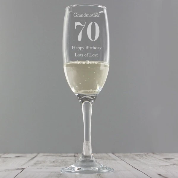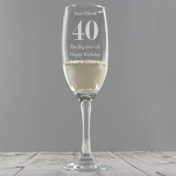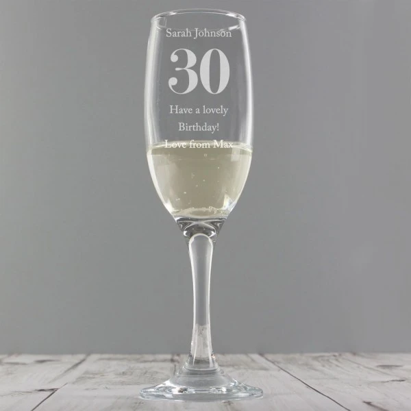 Personalise this flute glass with a name up to 15 characters and any age/number up to 2 characters. The glass can also be personalised with a message over 3 lines of text, with up to 15 characters per line.