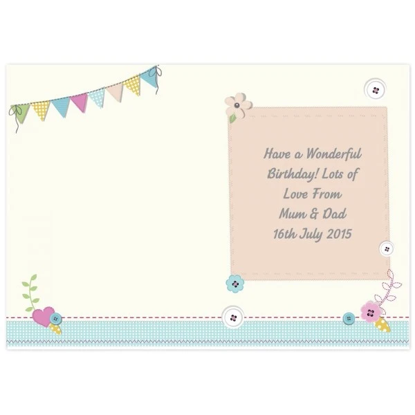 Personalise this Birthday Craft card with an age up to 2 characters, followed by 2 lines of up to 20 characters each on the front of the card. The inside of this card can also be personalised with 4 lines of up to 20 characters each.