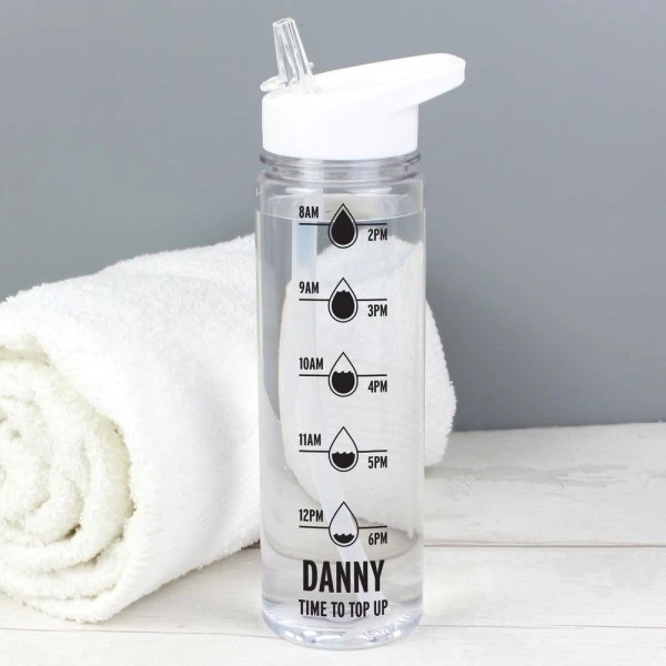 This black personalised water bottle is sure to keep you motivated to keep drinking water throughout the day!
