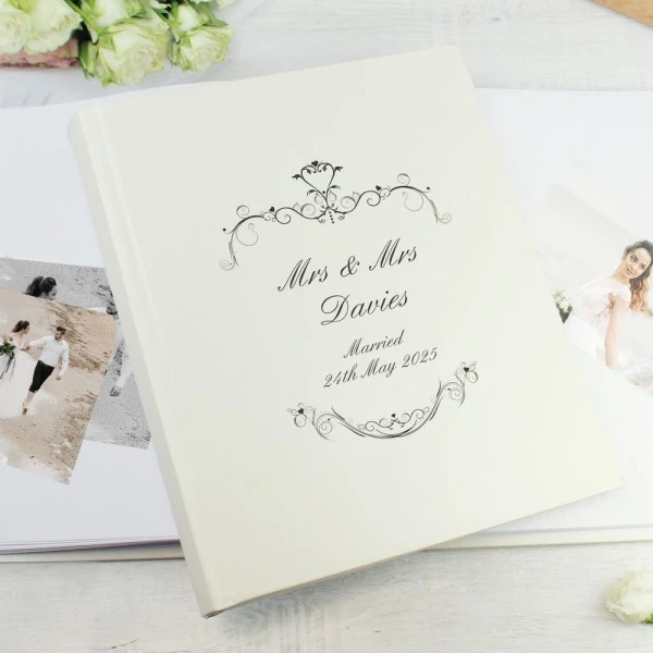 This Black Ornate Swirl Traditional Cream Photograph Album can be personalised with any message of your choice over 4 lines up to 25 characters per line. The first two lines are in bold.