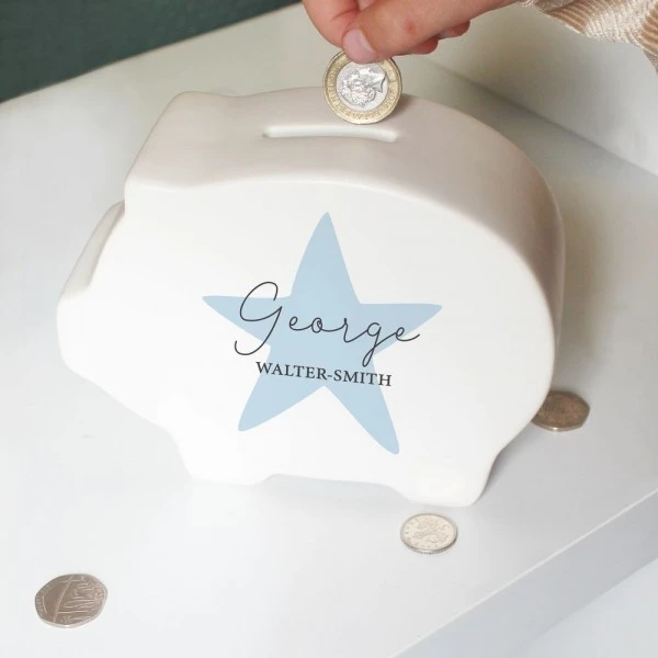 This personalised piggy bank is perfect for keeping those pennies safe!