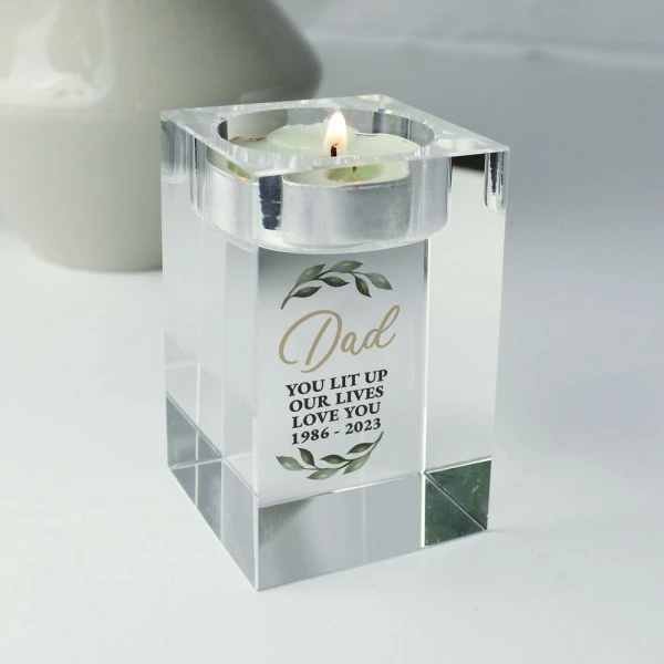 This Personalised Botanical Memorial Glass Tealight Holder is a lovely way to remember a loved one.