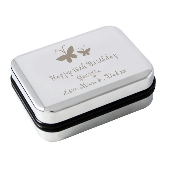 Personalise this Necklace gift box with any message of up to 3 lines of 20 characters underneath the butterfly motif.