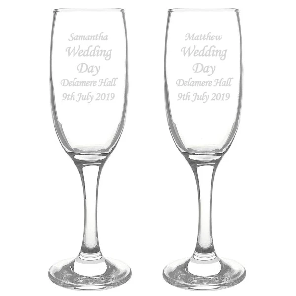 These beautiful flutes are laser engraved with the key part of the message in large lettering, 5 lines per flute (14 characters for line 1,4, and 5 and 12 characters for lines 2 and 3 which are in bold text)