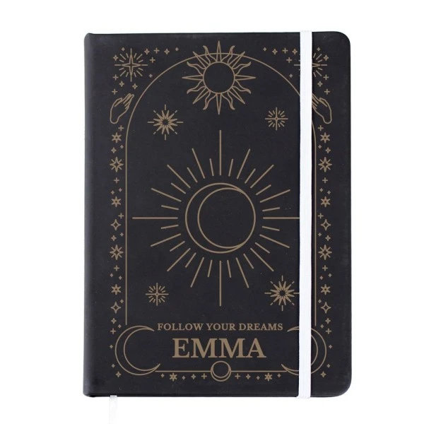You can personalise this notebook with 2 lines of personalisation. Line 1 has up to 20 characters available, line 2 has up to 12 characters available.