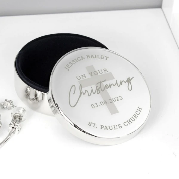 This personalised Christening Round Trinket is a gorgeous commemorative gift for any little ones Christening.