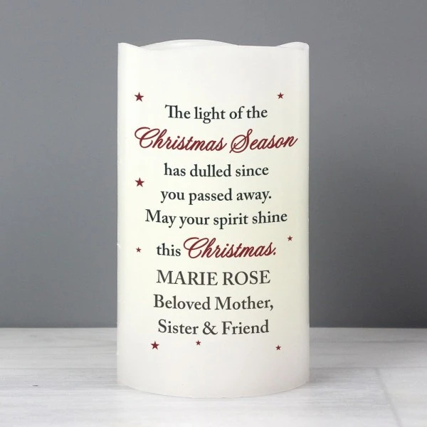 This beautiful Personalised Christmas Season Memorial LED Candle is a beautiful way to remember a loved one.