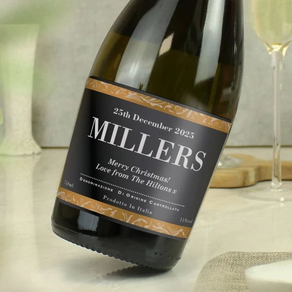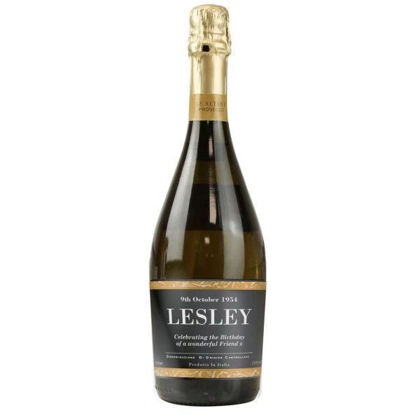 Any name and date can be added to the bespoke black label on this quality Prosecco.