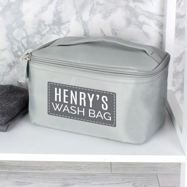 This Personalised Classic Grey Make Up Wash Bag is perfect for storing a variety of grooming products!