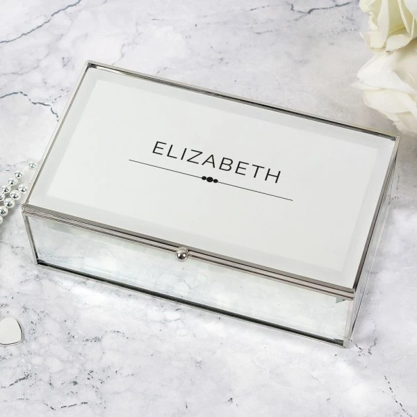 This clean modern jewellery box with mirrored finish, features three compartments to store your jewellery.