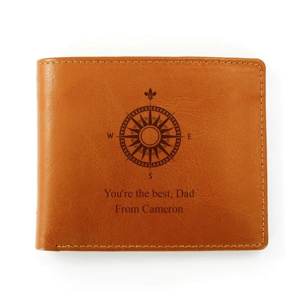 Keep all of that precious dough safe in this stylish Personalised Compass Tan Leather Wallet!