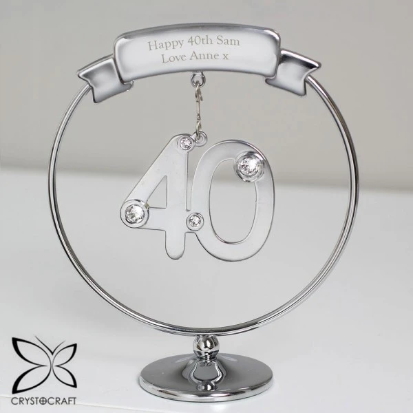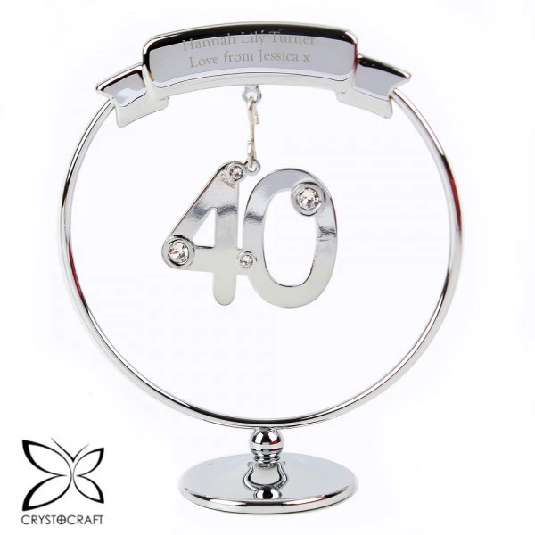 Mark their 40th Birthday or Wedding Anniversary with this elegant Crystocraft ornament. Dangling from a personalised round silver stand is a crystal clad