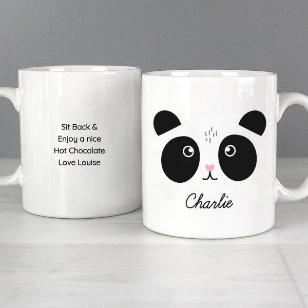 This mug can be personalised with any name on the front up to 12 characters long and a message over 4 lines with 25 characters available per line.