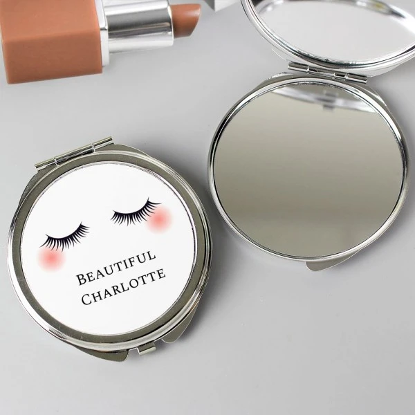 The cute Personalised Eyelashes Compact Mirror is perfect for putting in your hand bag to make sure you look fabulous all day!