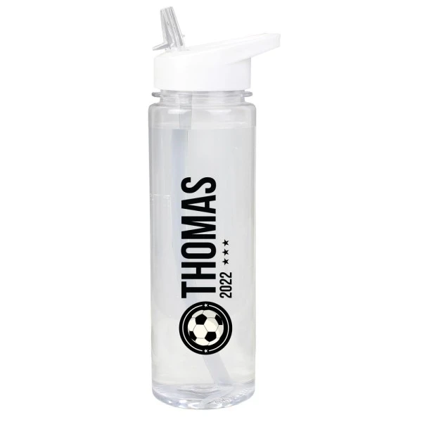 The bottle features a white twist -on lid, clear concealable flip -top drinking spout attached to a straw.