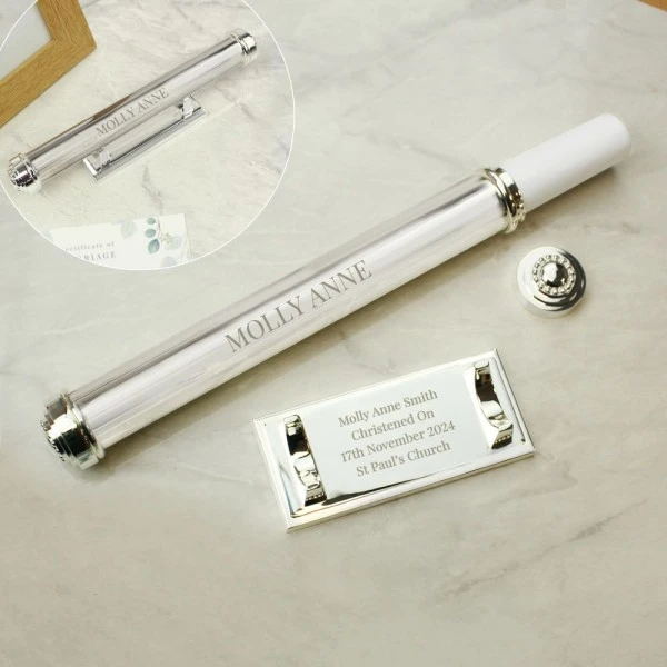 This Personalised Free Text Silver Plated Certificate Holder is a special gift to give for any Wedding, Christening or 1st Holy Communion.