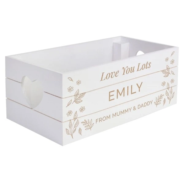 This personalised white wooden crate is a great way to add a personal touch to any home!