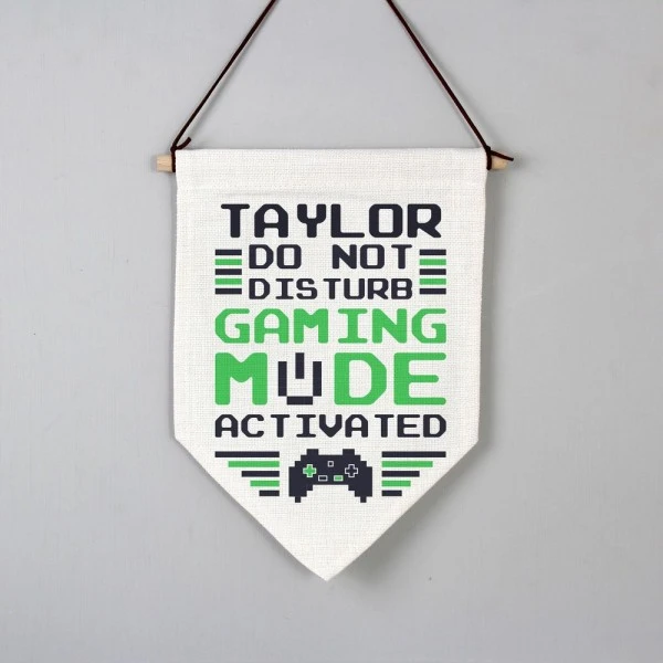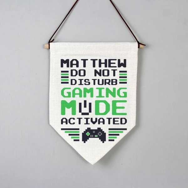 Personalise this linen hanging banner with a name of up to 12 characters.