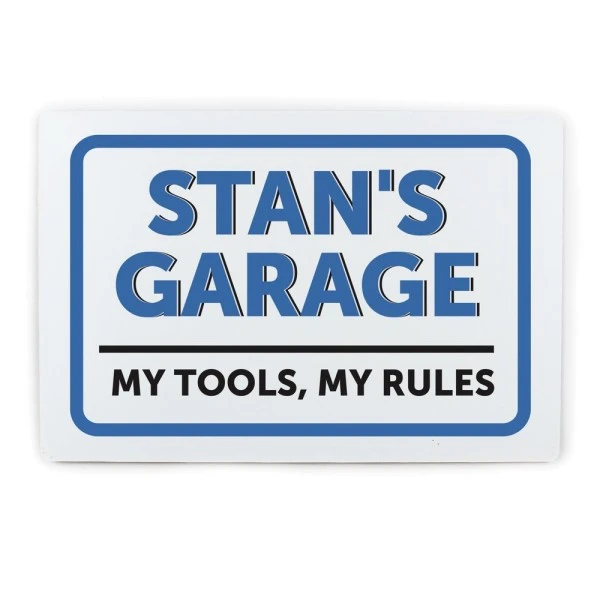 Personalise this Garage Plaque with a name up to 12 characters and a message over 1 line of 20 characters.