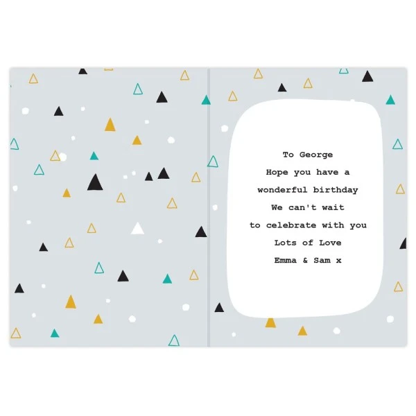 Personalise this card with 2 lines of 12 on the front as well as a name up to 12 characters.