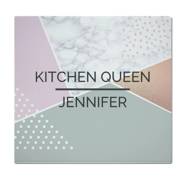 You can personalise this Geometric Glass Chopping Board with any message up to 2 lines, with a maximum of 15 characters per line.