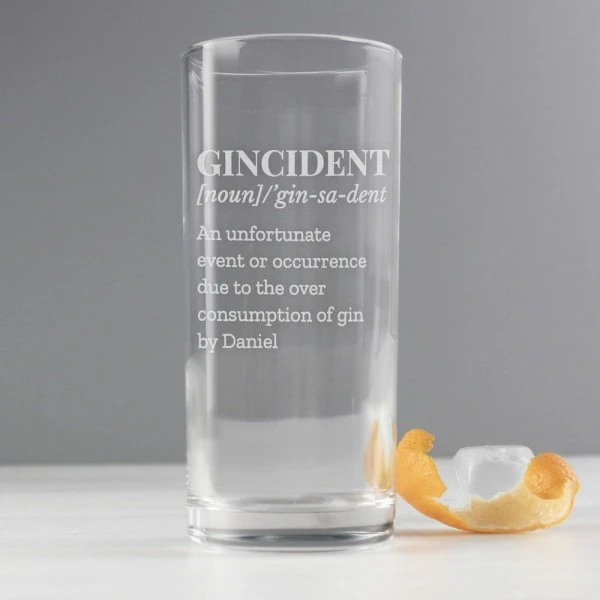 This Personalised Gincident Hi Ball Glass is an ideal gift for any fan of gin.