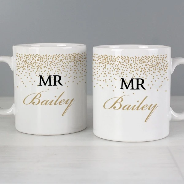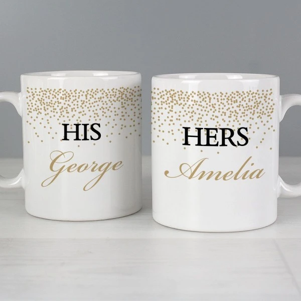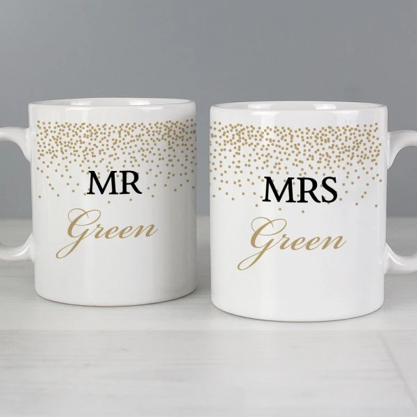 This Gold Confetti Mug Set is the perfect elegant gift for any couple.