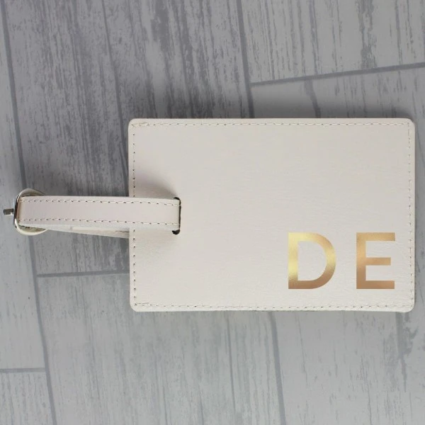 Ensure your luggage can be easily identified with this stylish Personalised Gold Initials Cream Luggage Tag!