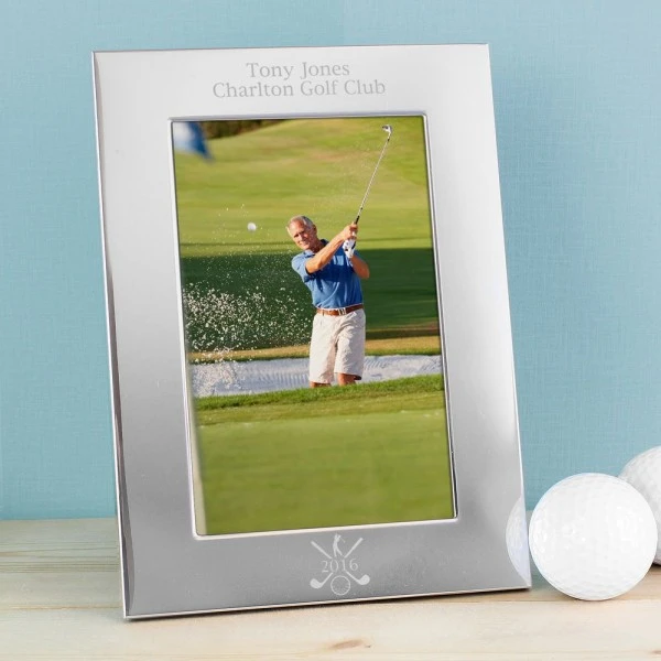 Personalise this Portrait Golf 6×4 Aluminium Frame with any message over 2 lines up to 25 characters per line and an additional 3rd line of up to 4 characters.