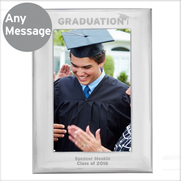 Personalise this silver 4×6 Graduation Photo Frame with any message over 2 lines at the bottom of the frame, up to 30 characters each.