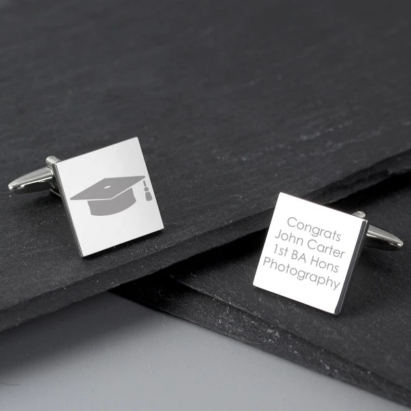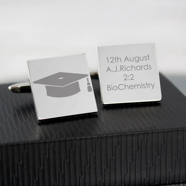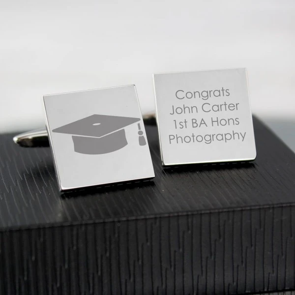 The second cufflink can be personalised with up to 4 lines, 12 characters per line.