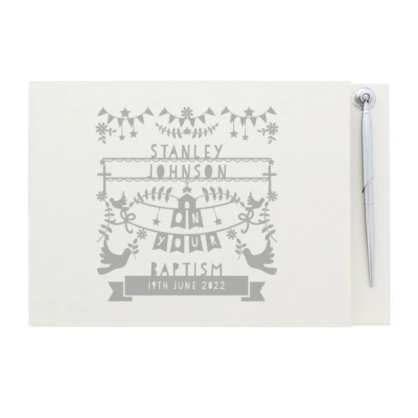 This Grey Paper Cut Styled Guest Book is a gorgeous commemorative gift perfect for any religious occasion!