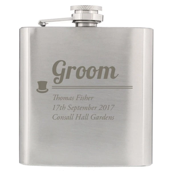 Our Groom Hip Flask is an ideal way to commemorate the groom’s big day.