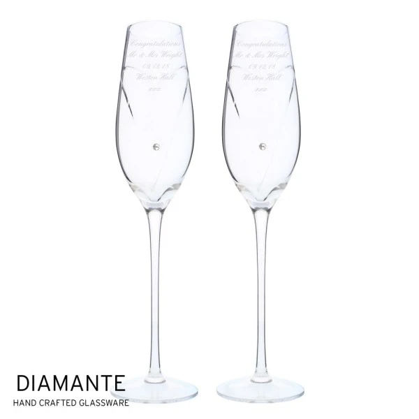 Personalise the flutes with the same message on each one over 5 lines, 17 characters max on the first 4 lines and 4 characters on the 5th line.