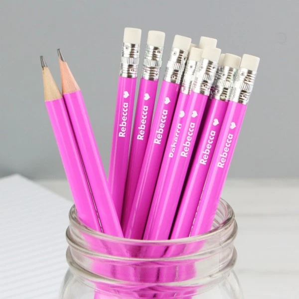 Personalise these Heart Motif Pink Pencils with any name up to 15 characters.