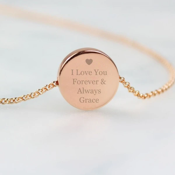 This stunning Personalised Heart Rose Gold Coloured Disc Necklace makes a fantastic gift for any occasion.