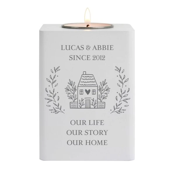 Personalise this white wooden tea light holder with the following: