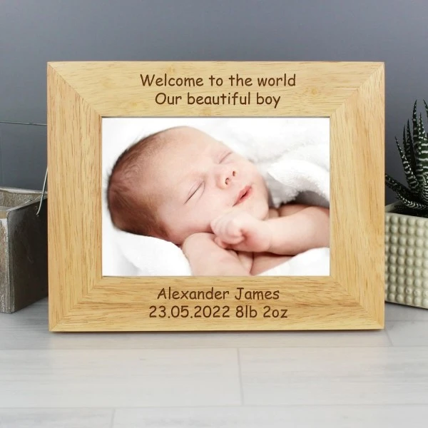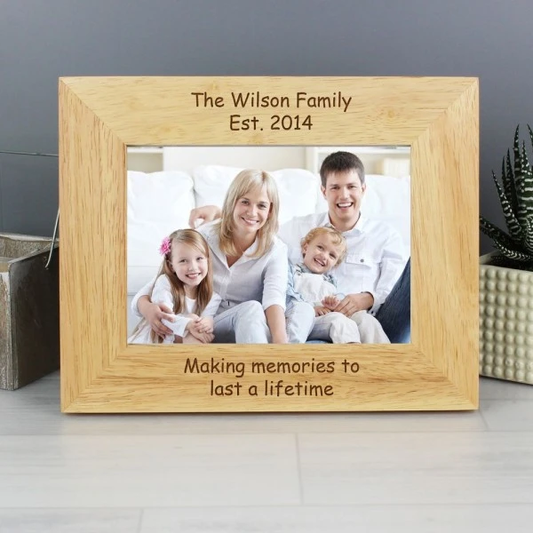 Personalise this wooden frame with any message over 4 lines and up to 20 characters per line. (2 lines above & 2 lines below the picture)
