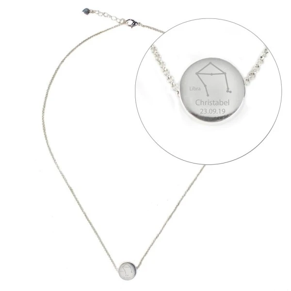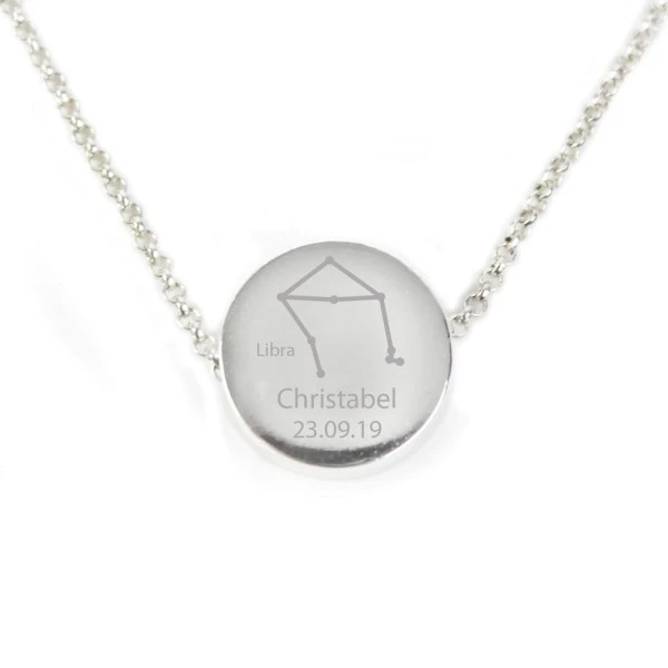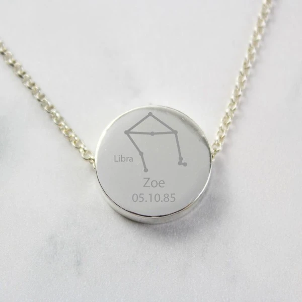 This Personalised Silver Tone Zodiac Libra (September 23rd -October 22nd) Disc Necklace is a stylish and elegant gift for her that is suited to all occasions.